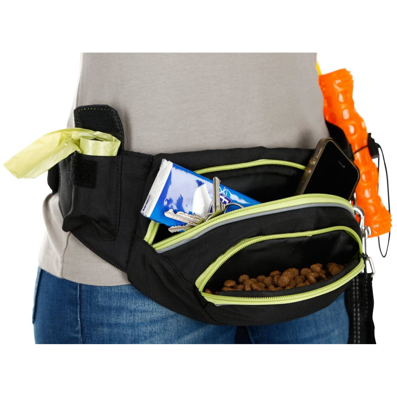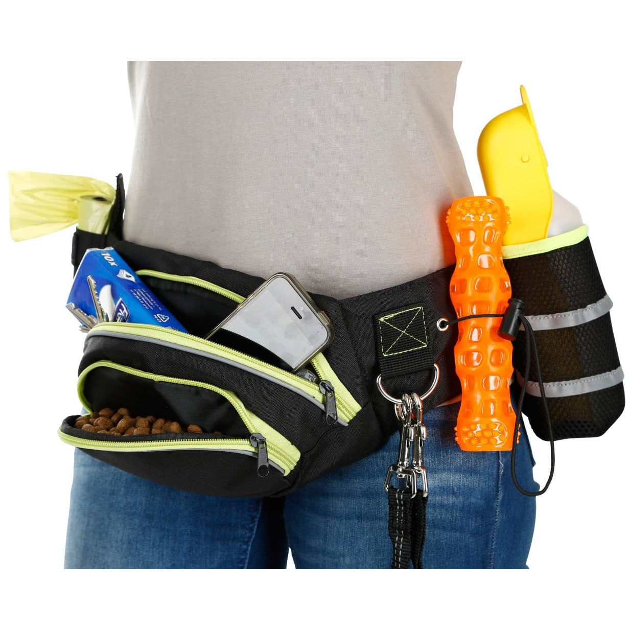 - wyposażony w dwie kieszenie na zamek błyskawiczny, pojemnik na pokarm, pierścień w kształcie litery D, elastyczną szlufkę i torebkę, pojemnik na wodę
